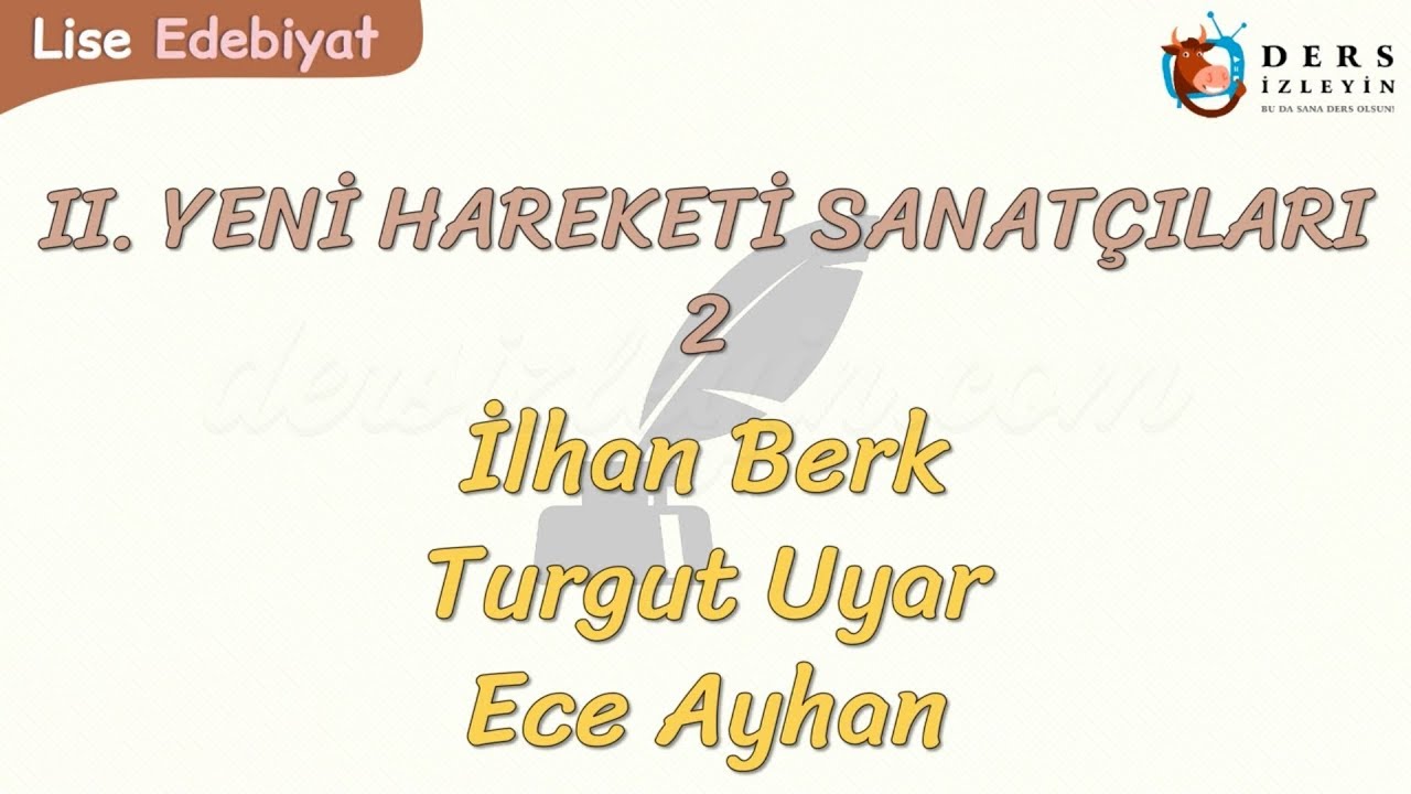 Bu videomuzda 2. Yeni Hareketi Sanatçılarından İlhan Berk, Turgut Uyar ve Ece Ayhan’ın edebi özellikleri ve eserleri anlatılacaktır. Konunun videosunu izleyerek konuyu daha iyi kavrayabilir ve bilginizi pekiştirebilirsiniz.