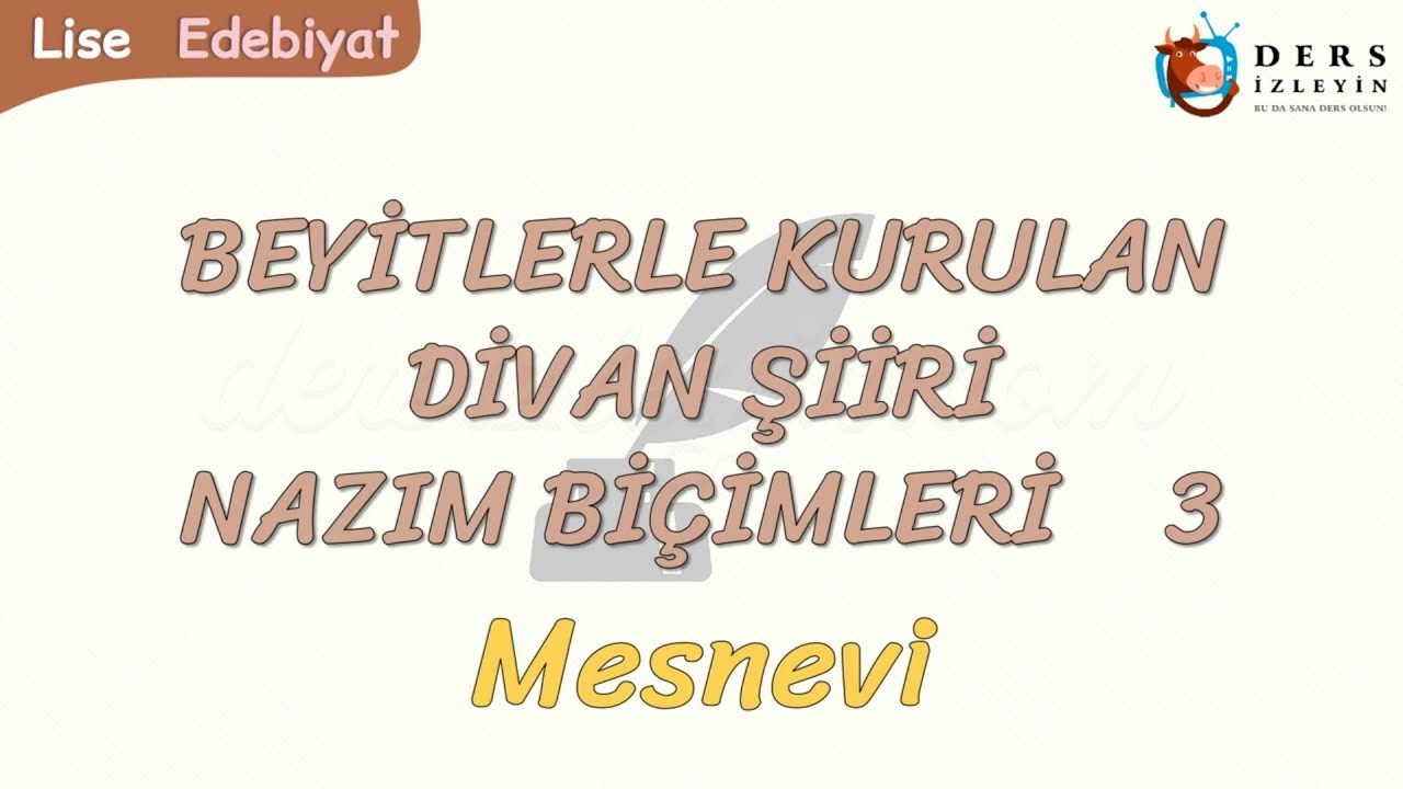 Liseler için hazırlanan bu ders videomuzda Beyitle Kurulan Divan Edebiyatı Nazım Biçimlerinden Mesnevi anlatılacaktır. Konunun videosunu izleyerek konuyu daha iyi kavrayabilir ve bilginizi pekiştirebilirsiniz.